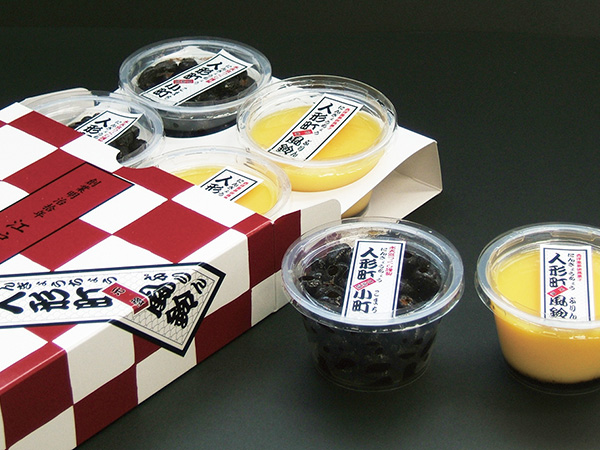 昔ながらの四季の和菓子や、白玉ぜんざい、白玉あんみつなどを、すべて手作りで提供する甘味処。濃厚で上品な甘さのプリン『人形町風鈴』は初代が残したレシピを再現したもの。